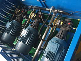 Cleaning Objects ![]() 1Auto High Pressure Washer(New) Cleaning Objects: Candle Filter External washing nozzle is used to cleaning up the surface of filter The telescopic internal flushing nozzle is deep inside the filter, and the filter is cleaned from inside to outside. 2. Auto High Pressure Washer Cleaning Objects: Candle Filter External washing nozzle is used to cleaning up the surface of filter The fixed internal flushing nozzle is cleaning the filter from inside to outside. 3. Manual High Pressure Washer Cleaning Objects: Candle Filter Auto High Pressure Washer I AWS-series Cleaning Objects: Candle Filter Main function: High-pressure cleaning machine is used to remove TiO2 and alkali remaining in the filter. System according to the procedures set automatically cleaning filter, the internal washing nozzle is inserted into the filter for cleaning. It has high cleaning efficiency, and good cleaning effect. There is no cleaning blind area, can effectively reduce the number of workers and reduce labor intensity. It is an important part of the cleaning process. Cleaning stage: Installing the filter---Internal washing ---External washing---End---Remove the filter; Installing the filter:Fixed the candle filter on rotary support; Select the internal and external cleaning times on the control cabinet, start automatic operation; Filter rotation:The filter element has been rotated during cleaning stage; High pressure internal washing:The high-pressure internal spray gun moves up and down with the reciprocating device, and the inner part of the filter is flushed, until the end of time. High pressure external washing:The high-pressure external spray gun moves up and down with the reciprocating device, Until the end of time。 End:end of the cleaning process Remove the filter Remark:The running time of the equipment, the speed of the spray gun moving, the flushing times of the internal and external washing are controlled by the touch screen。 Cycle Time