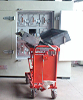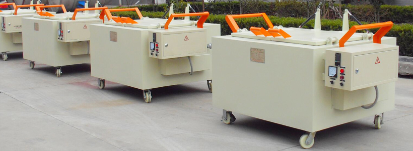 Spin-pack Preheating Oven SPO Series A: Preheating Objects: Spin-pack of polyester filament yarn. ![]() B: Preheating Objects: Spin-pack of PSF ![]() C: Preheating Objects: Spin-pack or Spinning pump ![]() Drawer Type Spin-pack Preheating Oven DSPO Series Preheating Objects: Spin-pack of polyester filament yarn Principle: Drawer-type components preheating oven for chemical fiber components in the preheating and insulation by electric heating. Flanged stainless steel electric heating elements installed inside the air duct, the heat issued by the heating element evenly work on components in workroom thought blower, so that the components are evenly heated. The oven adopts a set of fan circulation to make the inside temperature uniform. Take device model DSPO-5-3 as sample for more details: Preheating ability: 189 spin-pack(φ125×170mm) can be preheated at the same time in this device. 216 spin-pack(φ115×140mm) can be preheated at the same time in this device. Material Description Stainless steel surface pickling passivation treatment, carbon steel surface spraying twice anti-rust paint after manual derusting (derusting grade St2), coated around the mouth of high temperature silver paint, the rest of the surface spraying high temperature gray hammer paint twice, required paint layer uniform, in line with national C-class standards. Electric Control System According to the working principle of the drawer type preheating oven, using the Japanese "PXR" digital high-precision temperature controller automatically control equipment process temperature. When over-temperature, cut off the main heating power, and sound and light alarm, to ensure the normal operation of equipment and fault self-protection. The instrument has PID manual and can auto-tuning to set the best parameters, input excellent control signal to drive the heating control device (solid state relay), heating control device with automatic temperature cooling and fault self-diagnosis protection to ensure temperature control precision. As the heating mode of the device is electric heating through the air circulation method to the temperature uniform heating to the workroom, so the design of the fan and heating element interlock protection, the heater can work only the fan in the normal operation. Auxiliary device- Spin-pack insulation handcart SIH Series ![]() The Spin-pack insulation handcart is supporting the drawer type spin-pack preheating oven, pick and place, transport the components after preheating. Lifting car consist of the frame, platform, four-bar linkage mechanism, hydraulic pumps, insulation box, wheels and other components. Take device model SIH-5-3 as example for certain details: Stainless steel surface pickling passivation treatment, carbon steel surface spraying twice anti-rust paint after manual derusting (derusting grade St2), coated around the mouth of high temperature silver paint, the rest of the surface spraying high temperature gray hammer paint twice, required paint layer uniform, in line with national C-class standards. Take device model SIH-5-3 as example for certain details: §Preheating ability: 7 spin-pack(φ125×170mm) can be preheated at the same time in this device. 8 spin-pack(φ115×140mm) can be preheated at the same time in this device. §Structural features: The Spin-pack insulation handcart is supporting the drawer type spin-pack preheating oven, pick and place, transport the components after preheating. Lifting car consist of the frame, platform, four-bar linkage mechanism, hydraulic pumps, insulation box, wheels and other components. The frame is installed on a totally enclosed polyurethane wheel, and the wheel is composed of two directional wheels and two universal wheels which is equipped with a brake device. Platform from the jack through the hinged four linkage mechanism to lift. The platform has a insulation box, the inner shell of the box and the outer frame support a good thermal insulation performance, the insulation box is equipped with rails, and orbit docking in drawer-type components preheat oven , easy to remove the tray of the components. §Technology performance: 1、Lift car loading weigh:350kg 2、Lifting height: maximum 1400mm minimum: 470mm Net. rise: 1200 mm 3、Lifting platform length:840 mm lifting platform width:280mm §Performance Evaluation: 1. Insulation performance : remove 8 components from the preheating oven around 320 ℃, put into the insulation box for 20 minutes, with the point-temperature measure box surface temperature, compared with the ambient temperature, not more than 15 ℃. 2. Lifting sensitivity: lift car can freely lift, and with the drawer accurate and flexible docking. 3. Wheels with anti-winding rounds. 4. All steel are national standard. 5. Painting standards: in line with C-class standards. 6. All steel with manual derusting, derusting grade St2. Other Device ![]() ![]() ![]() ![]() 3. Horizontal Spin-pack Preheating Oven HSPO Series Preheating Objects: Spin-pack of polyester filament yarn ![]() ![]() ![]() Principle : Horizontal Preheating Oven with Two-door, upward mouth, easy to pick and place components. Oven with shelf preheating components, stainless steel electric heating elements installed in the oven, through the fan, the heat generated by the heating element even work on interior components (heating element can be a single replacement). Hydraulic support bar to open the door to reduce the labor intensity of the operator. When the door is opened, the device automatically cut off the heating power, to ensure safe operation. The oven door and oven mouth are double sealed packing structure. Take device modelHSPO-3-2 as sample for certain details: §Preheating ability: 72spin-pack(φ120×136mm) can be preheated at the same time in this device. §Electric Control System According to the working principle and requirements of the preheating oven, using the Japanese "PXR" digital high-precision temperature controller automatically control te