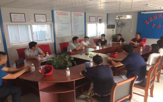 今年新分配的大學生到蘇家社區工地參觀學習并參加座談,公司黨支部書記于英年同志、集團人力資源部經理劉興紅同志、公司副經理孫曉波同志、工地項目經理、工地黨支部成員等出席會議。