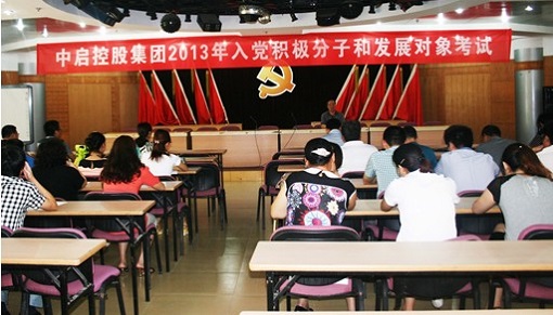 2013年7月6日上午8點(diǎn)30分,中啟控股集團(tuán)黨委組織30多名入黨積極分子和發(fā)展對(duì)象在集團(tuán)二樓多功能廳進(jìn)行黨建知識(shí)考試,集團(tuán)黨委邢吉忠副書記到考場(chǎng)監(jiān)督考試。