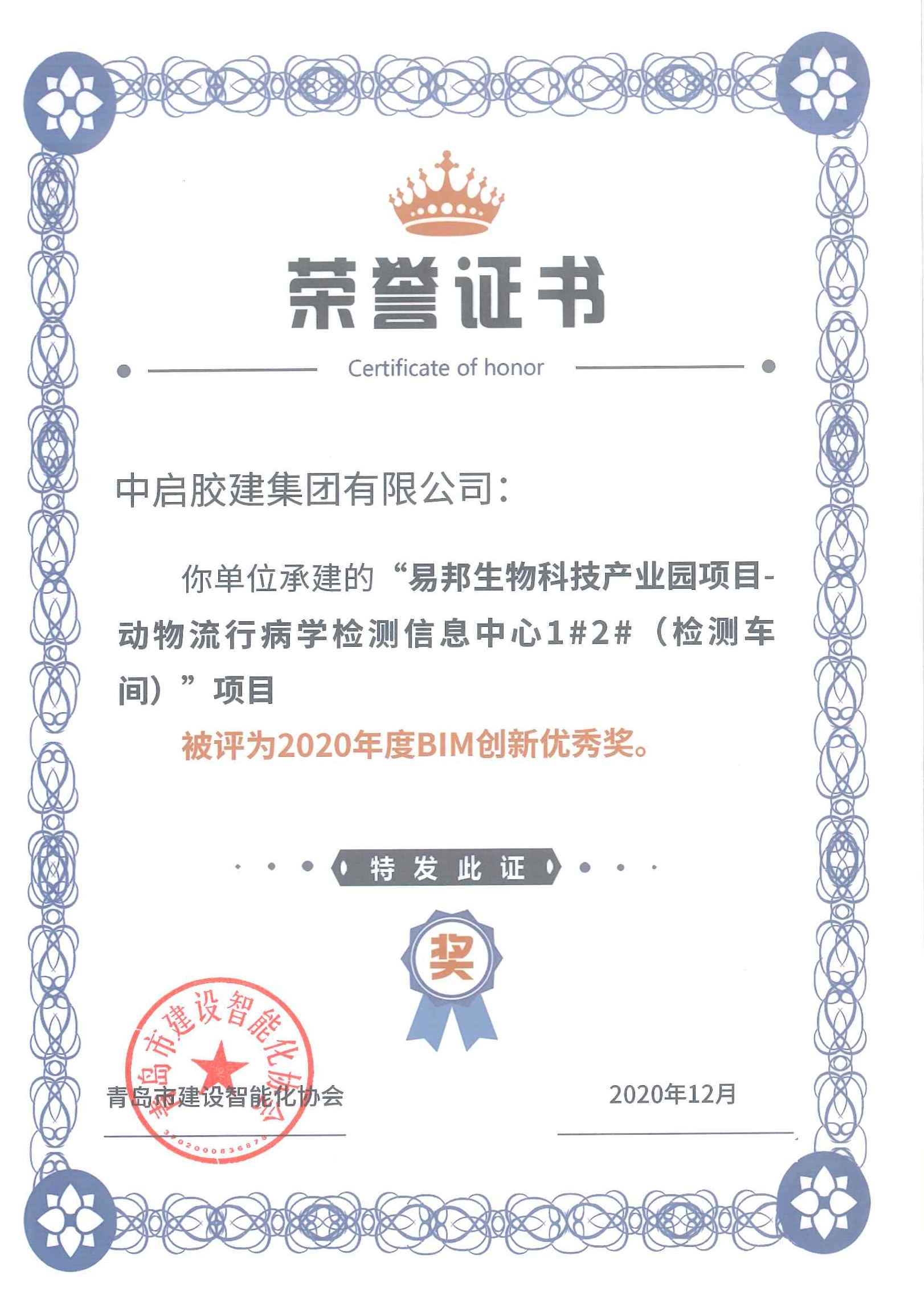 日前,在青島市建設智能化協(xié)會組織的2020年度智能化系統(tǒng)優(yōu)秀成果項目及BIM創(chuàng)新活動評選中,中啟膠建集團華東公司施工的青島理工大學嘉陵江路校區(qū)圖書館項目榮獲BIM創(chuàng)新一等獎,易邦生物科技產(chǎn)業(yè)園項目榮獲BIM創(chuàng)新優(yōu)秀獎。這是我公司首次榮獲該獎項。