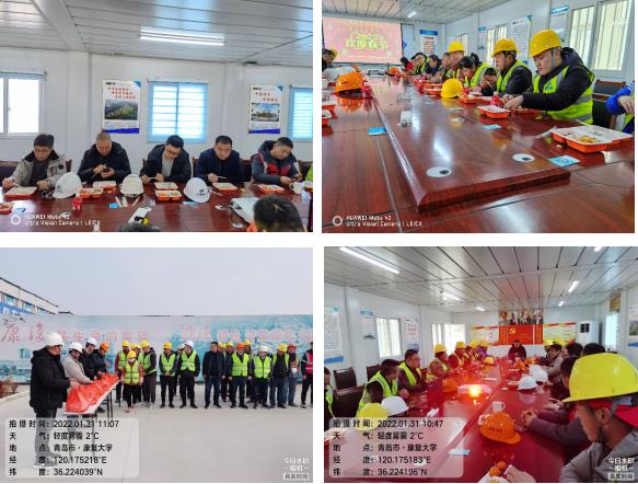 中啟膠建集團建筑七公司康復(fù)大學(xué)項目部為確保工程施工進度,結(jié)合疫情常態(tài)化防控需要,號召建筑工人留在項目過年,在康復(fù)大學(xué)(三標(biāo)段)學(xué)部項目生活區(qū)舉行“我在項目過大年”春節(jié)就地過年員工慰問活動,向五十余名留守項目的工人兄弟們送上新春禮包和防疫禮包。