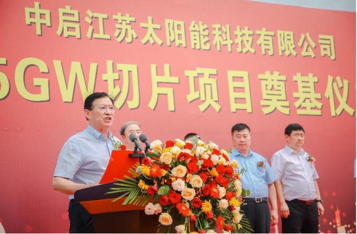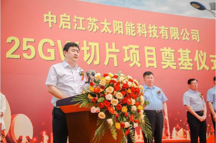 8月28日上午,中啟江蘇太陽能科技有限公司年產25GW高效單晶硅切片項目奠基儀式在項目現場隆重舉行。