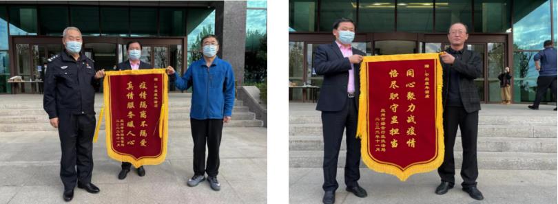 在各級領(lǐng)導的大力支持下、各位同事的共同協(xié)作下,經(jīng)過半個多月的閉環(huán)管理,中啟康年酒店以零失誤的成績圓滿的完成了此次接待任務,受到了管控部與突擊隊的高度贊揚。11月18日下午,酒店樓和公寓樓兩邊突擊隊(分別是膠州市市場監(jiān)督管理局、膠州市綜合行政執(zhí)法局)分別授予了中啟康年酒店錦旗,以此表彰中啟康年酒店在此次接待工作中所做出的突出貢獻。這是續(xù)今年年初接待隔離留觀人員以來,喜獲的第五、第六面錦旗。