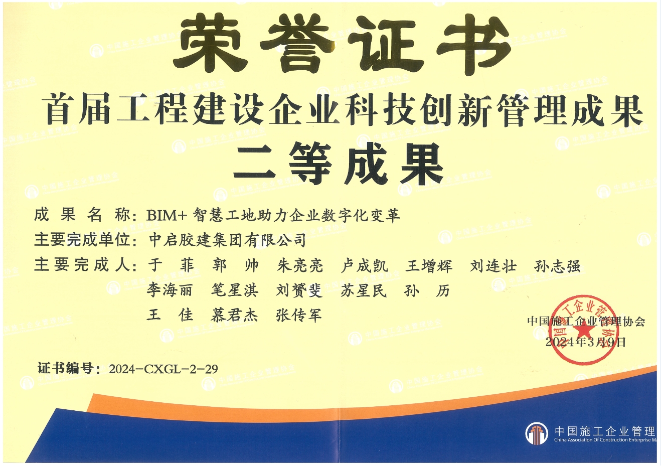 3月18日至20日,由中國施工企業(yè)管理協(xié)會主辦的“2024年工程建設(shè)行業(yè)科技工作會議”在廣州隆重召開,會上公布了首屆工程建設(shè)企業(yè)科技創(chuàng)新管理成果。中啟膠建集團(tuán)有限公司建設(shè)項(xiàng)目管理分公司的成果《BIM+智慧工地助力企業(yè)數(shù)字化變革》榮獲二等獎,并在會上做了推介展示。