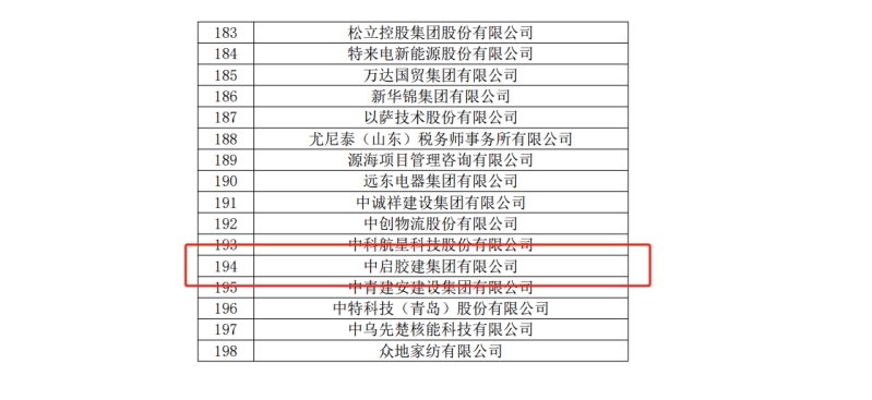 近日,青島市民營經濟發展局公布了“2024年度青島市民營領軍標桿企業”名單,中啟膠建集團連續兩年上榜。民營領軍標桿評選更重視企業的行業引領作用,從行業地位、經營規模、管理制度、創新發展等方面對企業進行綜合評價。入選2024年度青島市民營領軍標桿的企業有198家,來自農業、制造業、服務業、建筑業等各行業,是領軍作用突出、行業優勢明顯、核心競爭力強的民營龍頭企業。